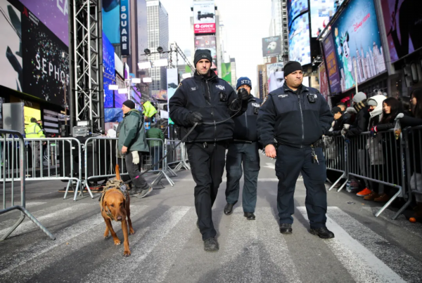 2019年12月31日,警察在美国纽约时报广场执勤。新华社发