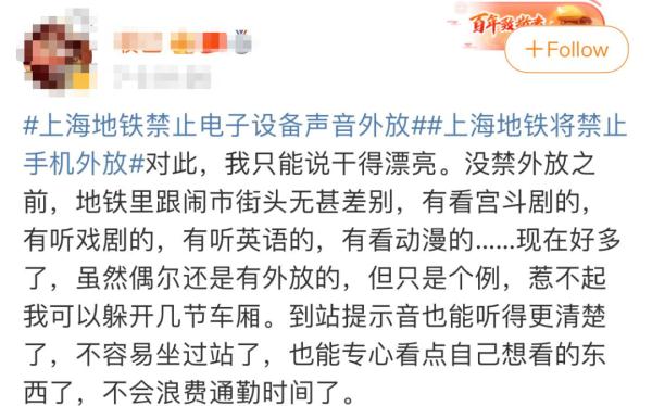 去年12月1日,《上海市轨道交通乘客守则》新增了针对电子设备的“静音条款”——禁止乘客在使用电子设备时外放声音。