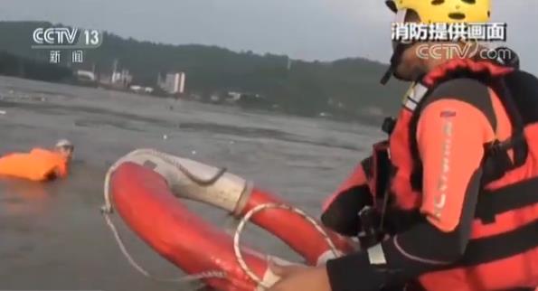 当天洪峰过境时,最高水位达197.26米,超出警戒水位2.76米。嘉陵江江面上有一些漂浮物,看似平稳的江面下方,也有着不少暗流和漩涡。救援人员迅速将冲锋舟放入水中,沿江搜寻落水者,将近1个小时后,终于在北碚水土码头,发现了水中的几个身影。
