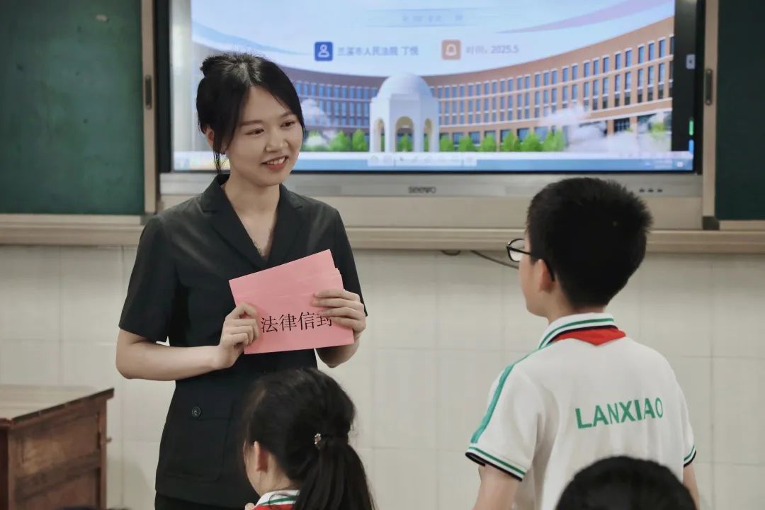 “拆信封居然能学法律?”刑庭干警带着精心准备的“法律信封”走进兰江小学,每个信封里都装着一个与同学日常生活息息相关的法律关键词。