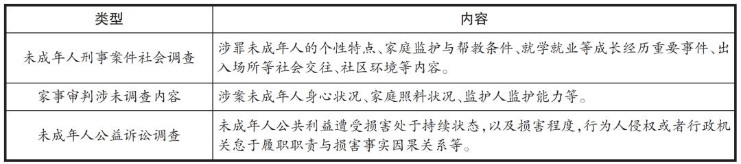 透过刑事、民事和公益诉讼不同性质诉讼程序的维度,调查工作的本质是为案件处理提供当事人的相关性格特点、家庭情况、社会交往、成长经历等事实依据,服务于司法机关确定最佳的个性化处遇方案。以事实为导向的调查工作具有可以超越诉讼规范的独立工具价值,在统一性未成年人司法构造视野之下诉讼调查程序之间具备通用的可能性。比如在未成年人刑事案件中开展对未成年犯罪嫌疑人是否与父母共同生活等家庭基本情况的社会调查,可以与家事审判中监护状况的调查需要相对应。同样,涉未成年人刑事案件社会调查发现未成年人的朋辈交往、在校或者就业表现、就业时间、职业类别等社会交往情况以及交往活动范围等社区环境,可以与是否存在违规雇用童工、存在不适应未成年人场所等公益诉讼案件办理的调查需要相适应。同时考虑到检察机关在未成年人刑事案件中适用社会调查程序已经实现全覆盖,统一性司法在刑事案件调查以外进行对应的其他保护需要的调查延展也具有现实可能性。