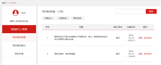 个人管理中可对收藏的案例、案例笔记、个人提交反馈进行管理。