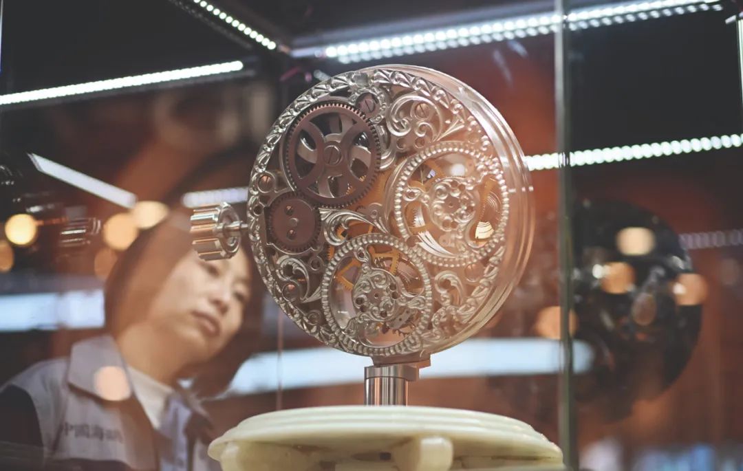 >>3月24日,天津海鸥表业集团员工在海鸥表博物馆内参观双陀飞轮机芯模型。 新华社记者 赵子硕/摄