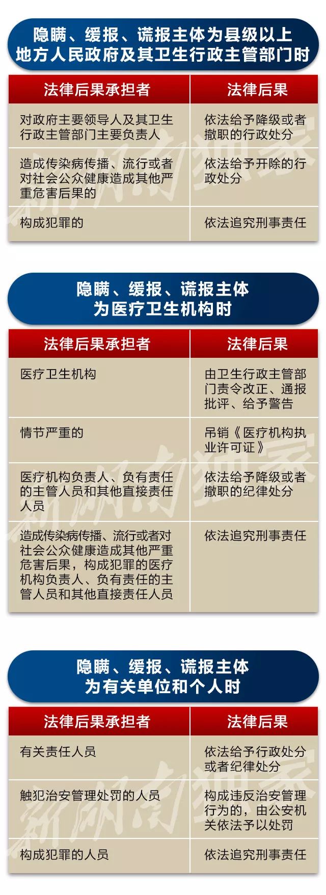 对此,李宇先强调,根据国务院《突发公共卫生事件应急条例》相关规定,不同主体隐瞒、缓报、谎报疫情的,需承担的法律后果不一。