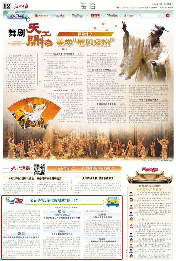 对于部分公证处推出车位使用权公证备案的举措,南昌市不动产登记中心自然资源登记科姚姓负责人认为,行政手段并非唯一的权益保障方式,车位产权登记与车位使用权公证备案分属不同法律范畴,两者并不冲突。