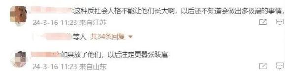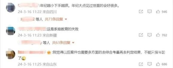 此案引起网友诸多评论,不少网友认为三名学生作案手段残忍,应该判刑、坐牢。还有网友联系到此前几起未成年人犯罪案件,认为目前法律条款对未成年违法犯罪处罚太轻。