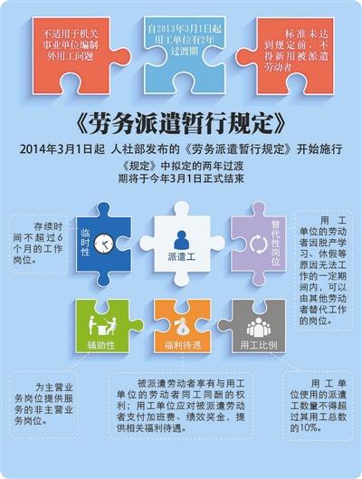 不论北大官方回应和北大学生调研谁更准确,这一《报告》甫一公布,即引起了人们对劳务派遣这一用工形式的关注。2008年《劳动合同法》颁布实施后,一些用人单位为了规避该法,大量使用劳务派遣工,劳务派遣工并不和用人单位签订劳动合同,事实上也同工不同酬。为了维护劳动者合法权益,2014年3月1日起实施的《劳务派遣暂行规定》中明确要求:“用工单位使用的被派遣劳动者数量不得超过其用工总量的10%。”同时明确:企业降至这一比例的时间是到2016年2月底之前。