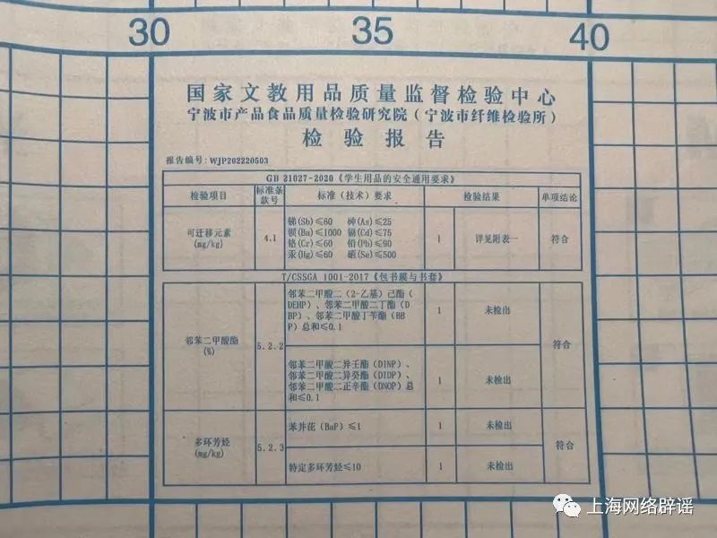 部分“安全标准”有水分文具安全备受家长关注,但调查发现,部分产品的“安全标准”存在水分。根据GB 21027-2020《学生用品的安全通用要求》,包书膜(书套)应当符合该标准的相关要求。同时,T/CSSGA 1001-2017《中国文教体育用品行业团体标准 包书膜与书套》还就包书皮这一品类进行了更加细致的规定。但从记者收集到的包书皮看,有的产品上明确印有根据国家标准送检得到的检验报告,明示产品未检出各种重金属、邻苯二价酸酯、多环芳烃等有害物质。