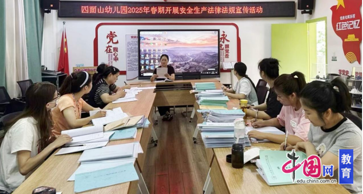为深化校园安全法治建设,近日,宜宾市江安县四面山镇中心幼儿园党支部以党建为引领,开展安全生产法律法规宣传活动。活动由幼儿园党支部书记陈昌敏牵头,组织全体教职工学习《安全生产法》《消防法》等法规,结合校园安全案例,重点解读消防设施管理、食品安全责任、应急预案制定等条款,强化教职工法治意识。