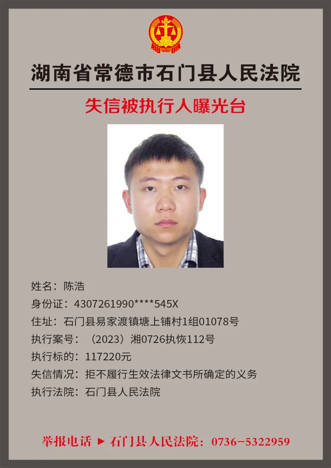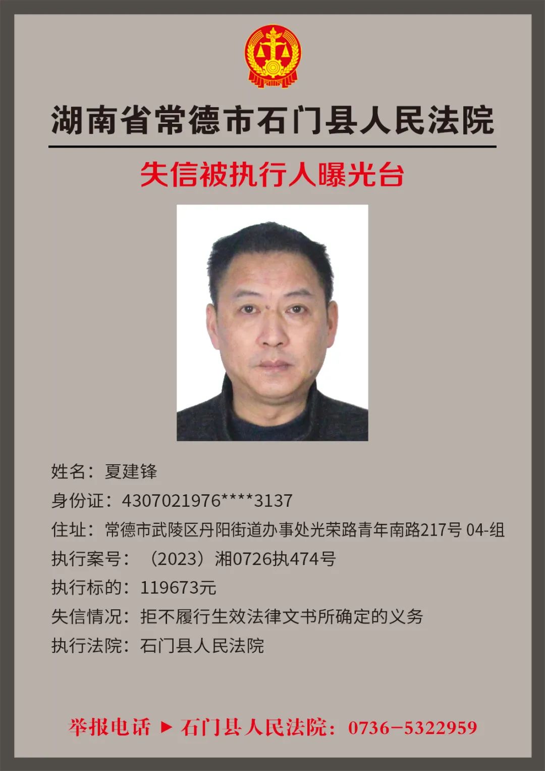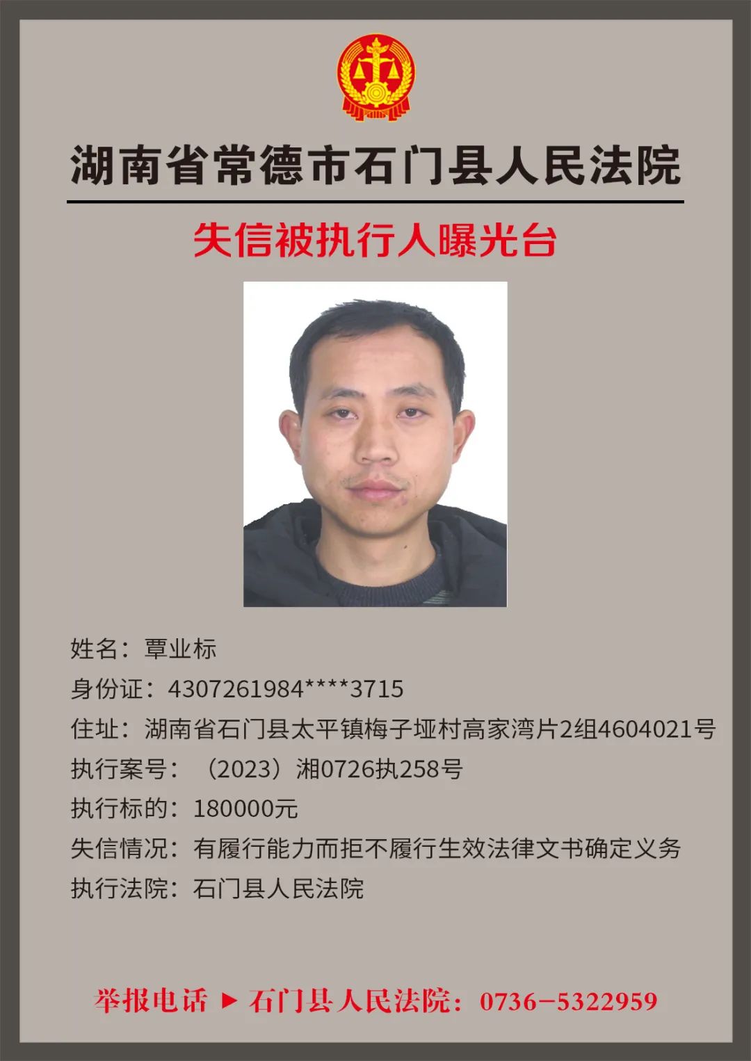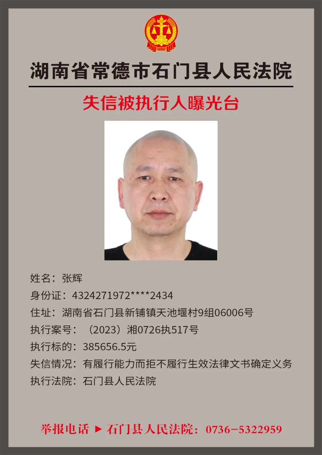 为推进社会诚信体系建设,营造惩戒失信、褒奖诚信的社会氛围,创造稳定、公平、透明、可预期的营商环境,根据《最高人民法院关于公布失信被执行人名单信息的若干规定》,石门法院会相继发布失信被执行人名单,本次为2023年第三轮曝光的失信被执行人,旨在加强对失信被执行人信用监督、威慑和惩戒。