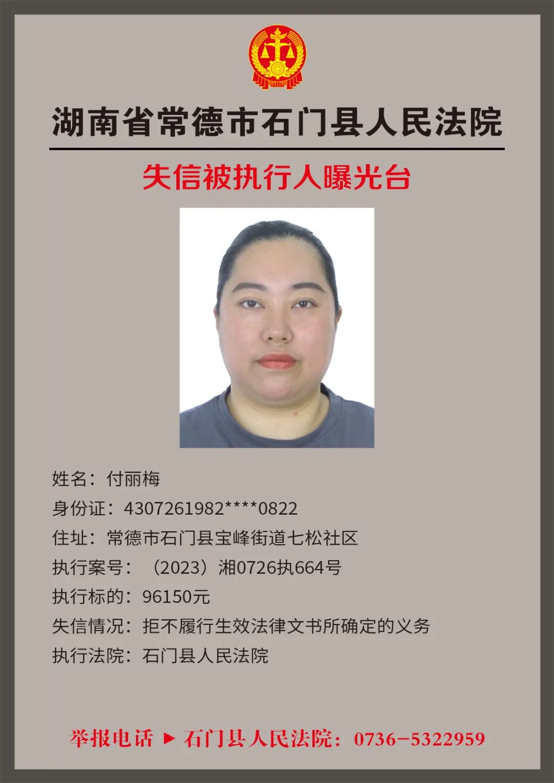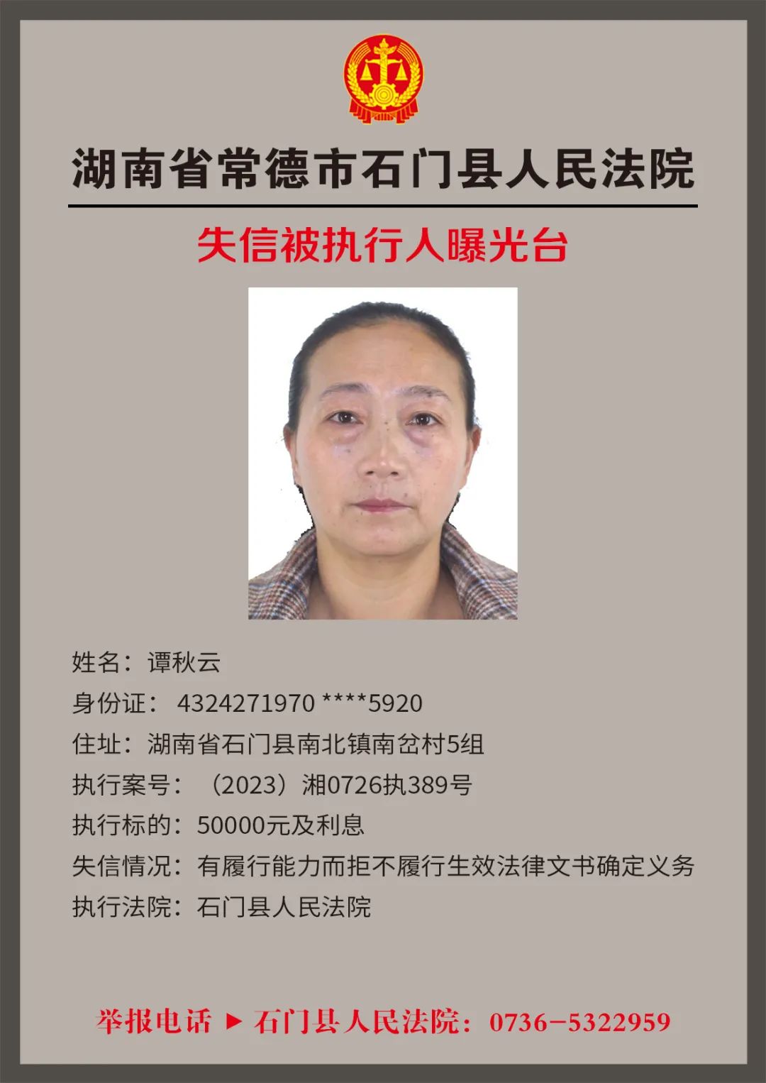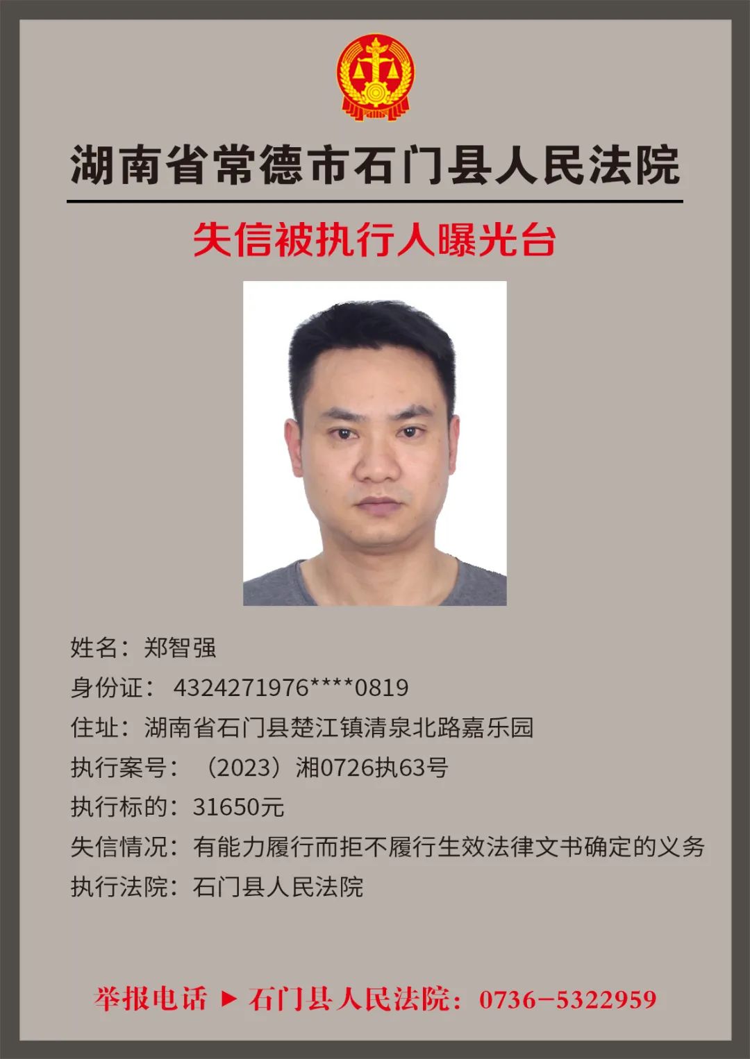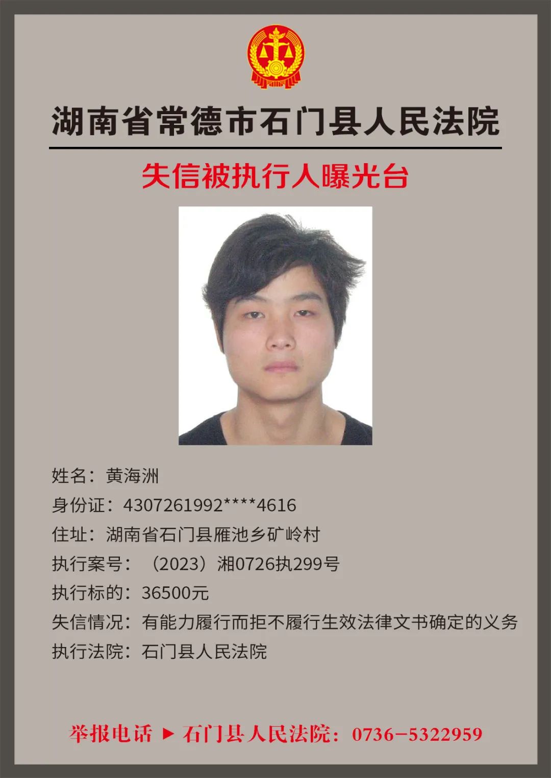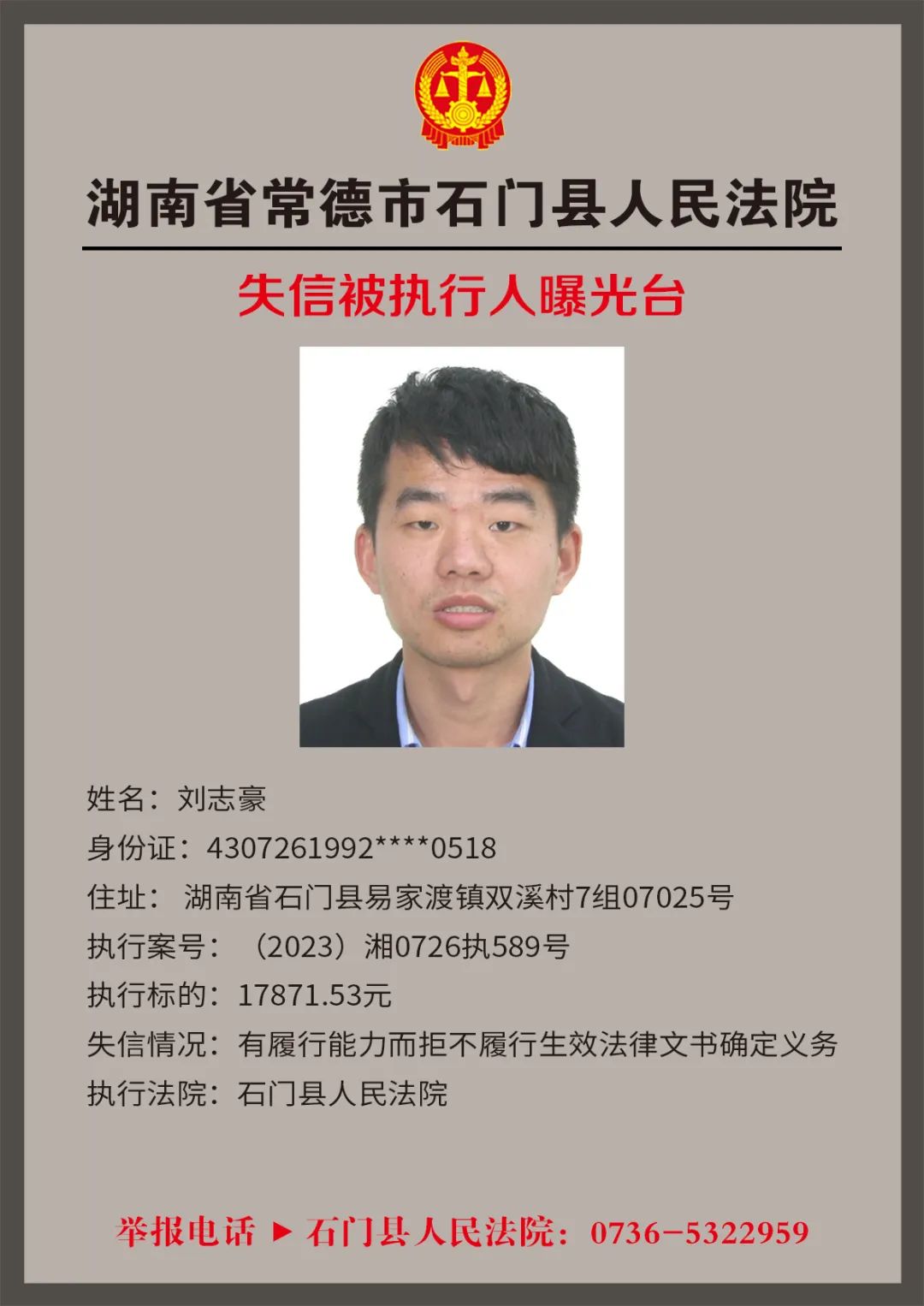 为推进社会诚信体系建设,营造惩戒失信、褒奖诚信的社会氛围,创造稳定、公平、透明、可预期的营商环境,根据《最高人民法院关于公布失信被执行人名单信息的若干规定》,石门法院会相继发布失信被执行人名单,本次为2023年第三轮曝光的失信被执行人,旨在加强对失信被执行人信用监督、威慑和惩戒。