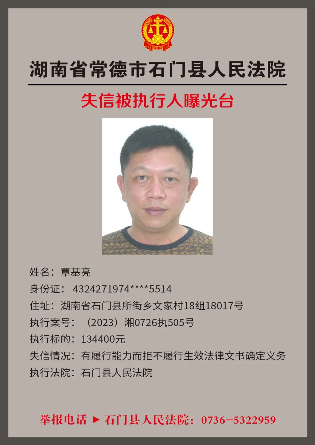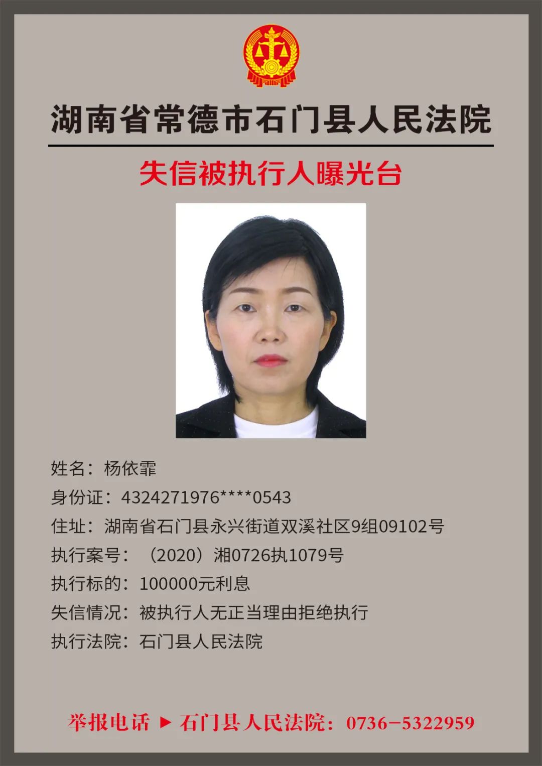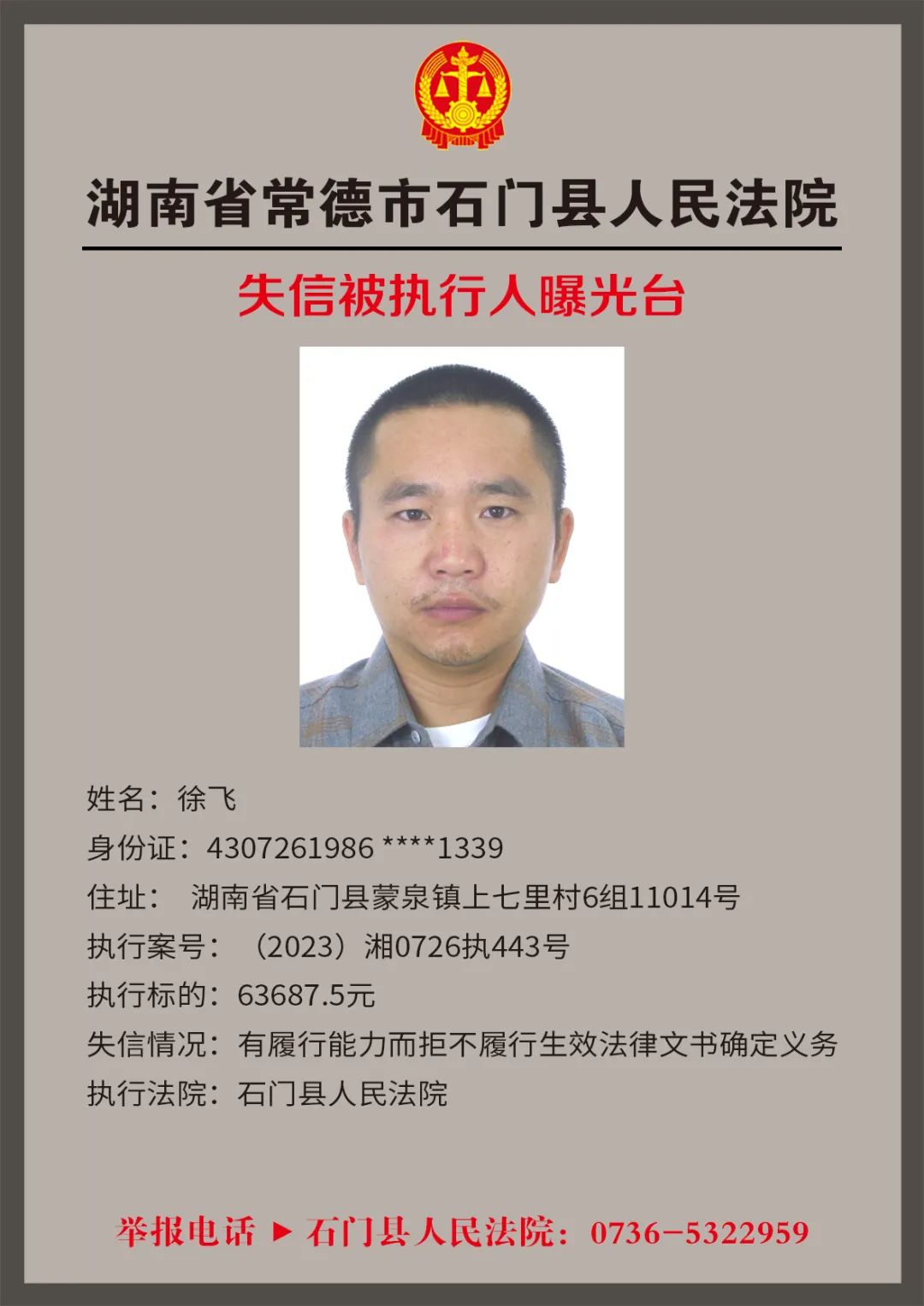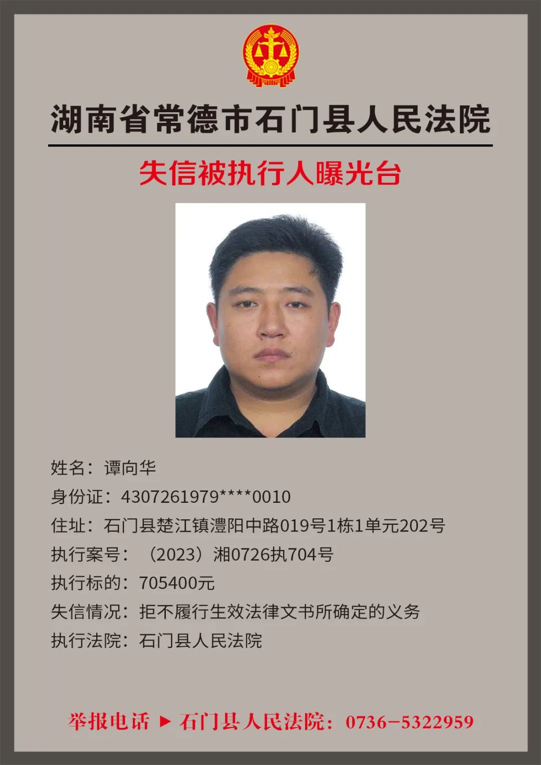 为推进社会诚信体系建设,营造惩戒失信、褒奖诚信的社会氛围,创造稳定、公平、透明、可预期的营商环境,根据《最高人民法院关于公布失信被执行人名单信息的若干规定》,石门法院会相继发布失信被执行人名单,本次为2023年第三轮曝光的失信被执行人,旨在加强对失信被执行人信用监督、威慑和惩戒。