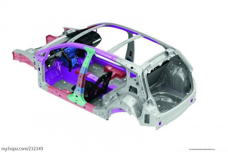 这个图中紫色就是热成型材料(拉伸强度大于1500MPa)。介于紫色和红色直接的是800MPa左右的超高强度钢板。