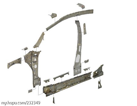 这个是侧围内板的分解状态,其实图中的部分零件属于下车体,比如门槛。