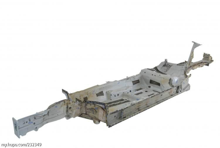 下图是前纵梁分解状态,右侧那根细长的,已经是地板下的纵梁了。