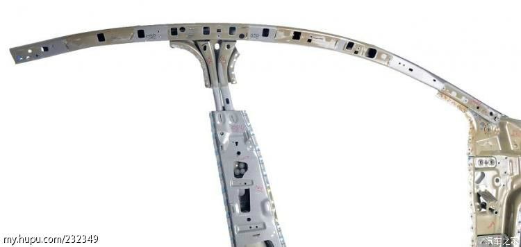 顶盖外板使用的是类似侧围外板的材料,较弱较薄,横梁则使用高强板。