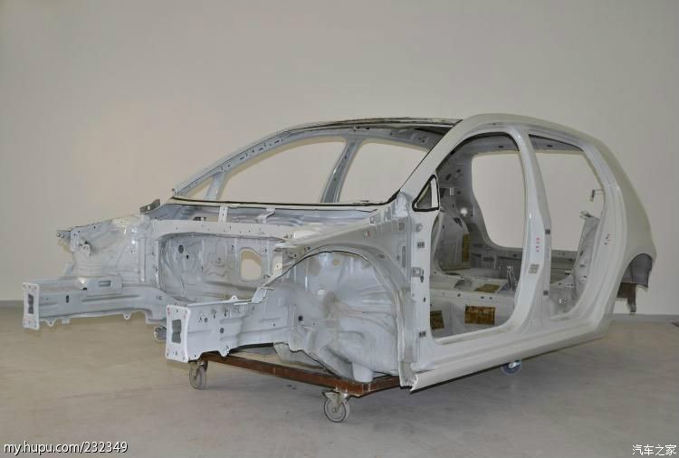 这是整个白车身最大的亮点,注意B柱以及上变量管状的加强件。