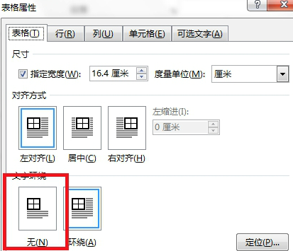 3、在弹出的对话框中,将“文字环绕类型”选为“无”。