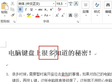 答:1、我们在Word2013中某处输入文字,会将之前的文字覆盖掉,如下图所示。