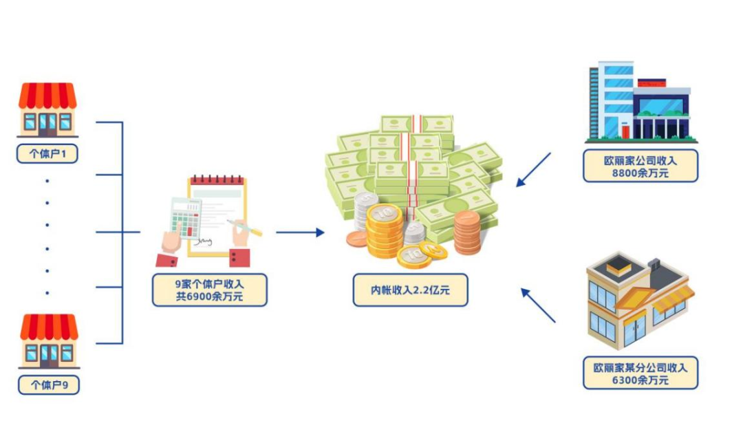 检查人员经查阅对比后发现,欧丽家公司设置了内外两套账。外账记录的收入与申报数据相同,而在内账上赫然记录着包含欧丽家公司在内的11家公司及个体户总金额超2亿元的销售数据,与申报数据差别巨大。