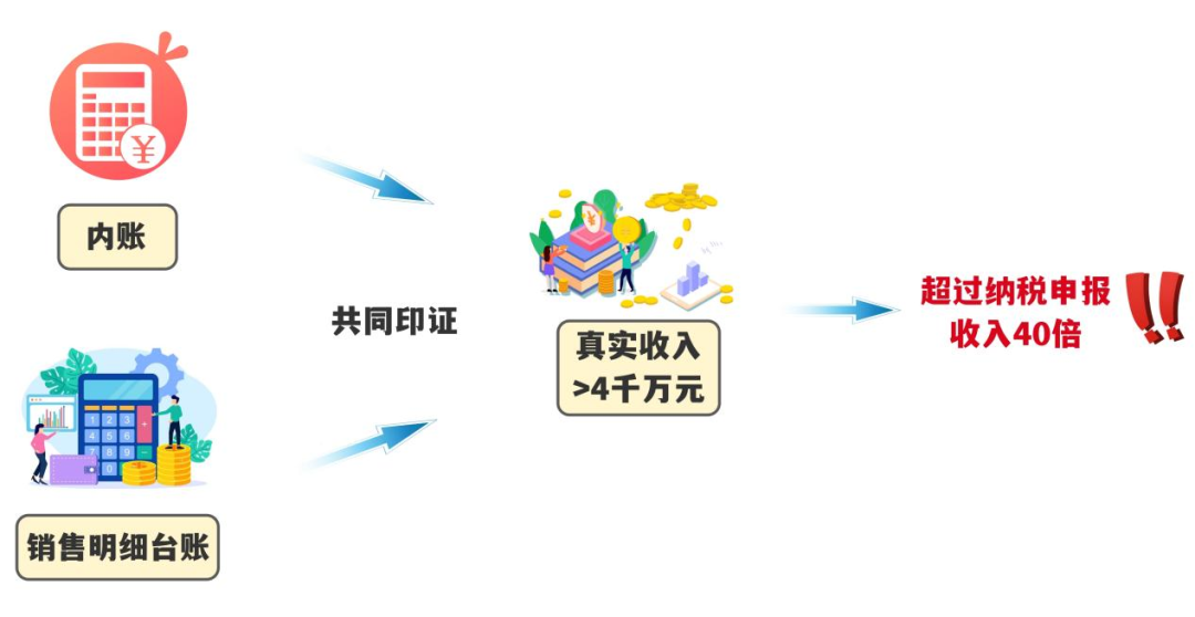 为弄清事实真相,检查人员依法检查公司财务人员电脑,发现有内外两套电子账簿:外账记录的收入与申报数据相同,而内账记录的经营情况与举报线索提及的规模特征基本一致。同时,仓库管理人员电脑里的销售明细台账详细记录了超4千万元的货品销售数据,超过纳税申报收入的40倍,与内账高度吻合。