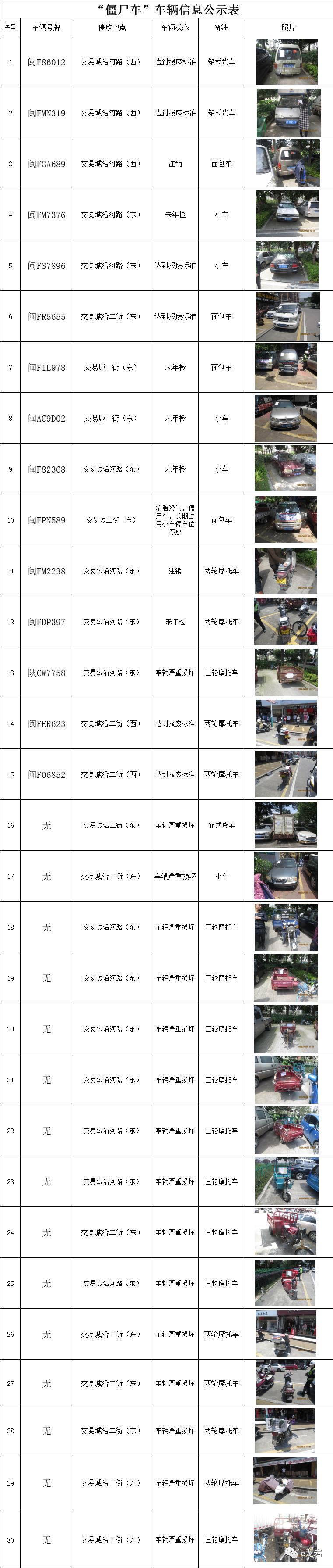 附:“僵尸车”车辆信息公示表