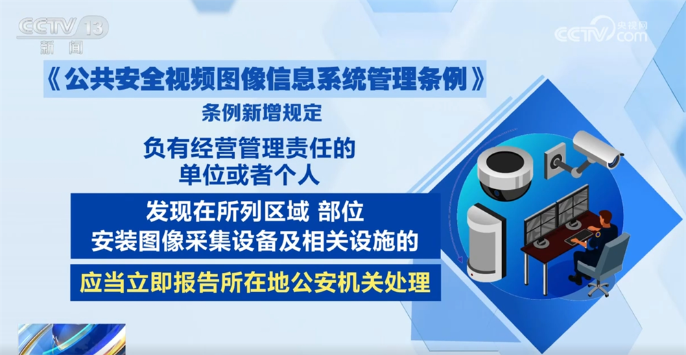 央视网消息:4月1日起,我国首部系统性规范公共安全视频管理的行政法规将正式施行,哪些公共区域可以安装摄像头?摄像头拍下的视频信息如何防止被滥用或泄露?个人隐私和个人信息权益如何保护?新施行的《公共安全视频图像信息系统管理条例》都将有明确规定。