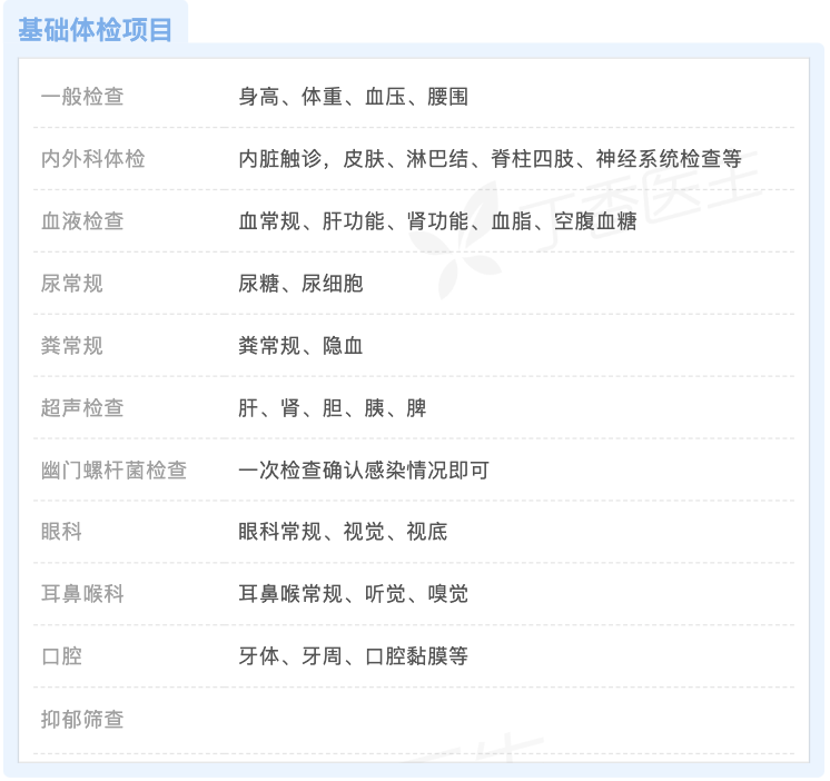 体检越贵越好吗?这个世界上越贵越好的东西本来就不多,就算有,也不是体检。丁香医生这么说,可是有事实撑腰的。体检为什么不是越贵越好?不得不说,现在的体检种类真。的。太。多。了。想做到雨露均沾是不可能的,于是不少人就开始困惑:我就想做个常规体检,到底哪些才算是常规体检项目?其实不管怎么眼花缭乱,体检主要分两大类:「基础体检项目」和「个性化体检项目」。1. 基础体检项目这就是常说的常规体检,主要包括以下