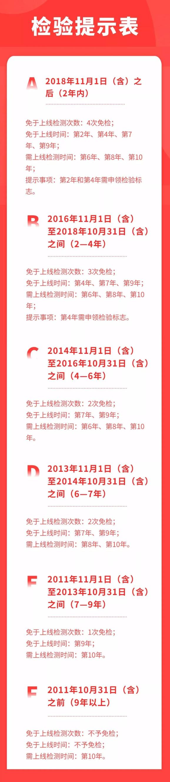6—10年间车辆每两年检验1次