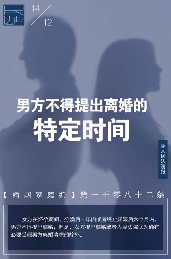 女方在怀孕期间、分娩后一年内或者终止妊娠后六个月内,男方不得提出离婚;但是,女方提出离婚或者人民法院认为确有必要受理男方离婚请求的除外。