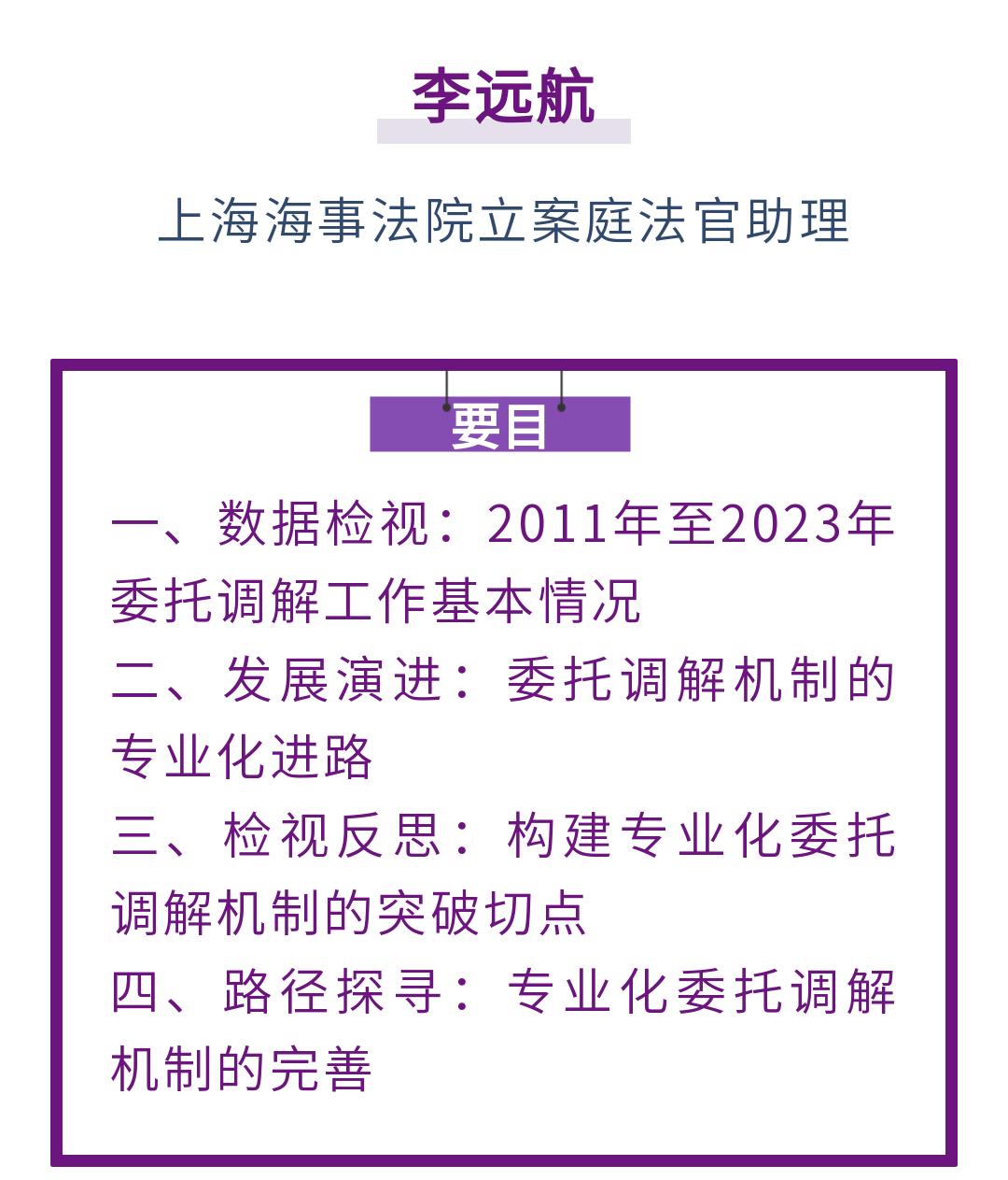 原标题:《李远航|专业化委托调解机制的实践探索与路径完善——以S市某专门法院2011-2023年委托调解案件为样本》
