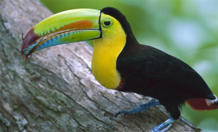 今天我们一起来看看南美洲东部和中部的一只巨嘴鸟托哥巨嘴鸟。巨嘴是指嘴巴较大,而且能将食物从口腔内挤出而不会造成伤害的鸟类。尽管托哥巨嘴鸟是巨嘴鸟物种中最大的,不过大家更熟悉的是彩虹巨嘴鸟,一样比较喜欢。因为它有着比其他巨嘴鸟更大的嘴巴,更宽的翅膀和更长的脖子。