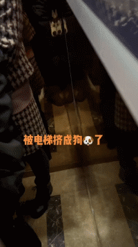 电梯上人很多,发现有只狗头被主人狠狠挤在角落...