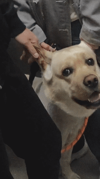 网友@是木小易耶上电梯时遇到一对情侣牵着一只大狗,因为怕狗子吓到她,于是俩人一人揪起了一只狗耳朵,给孩子薅的愣是没看出什么品种!