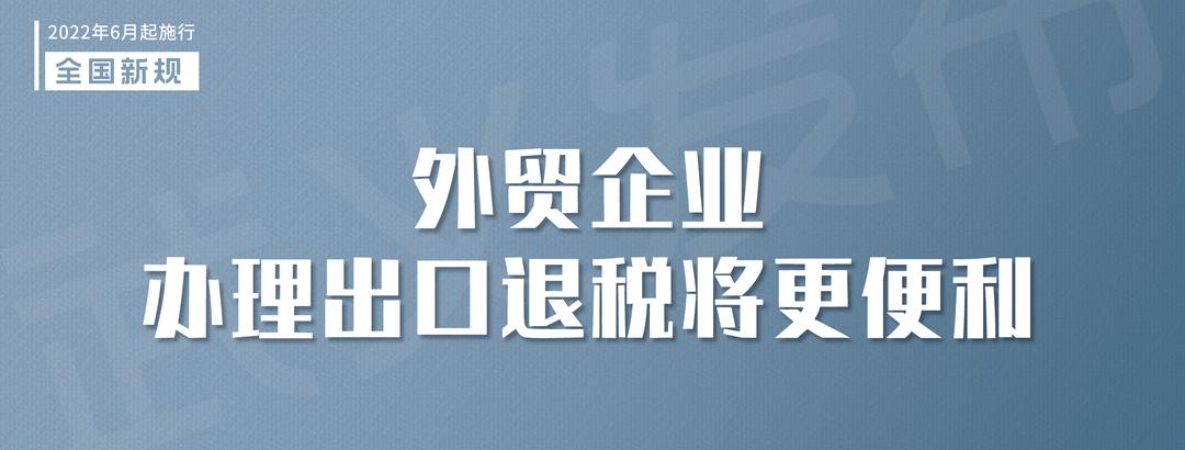 《国家税务总局关于进一步便利出口退税办理 促进外贸平稳发展有关事项的公告》明确,6月1日起,精简出口退(免)税报送资料、拓展出口退(免)税提醒服务。6月21日起,简化出口退(免)税办理流程、简便出口退(免)税办理方式、完善出口退(免)税收汇管理。