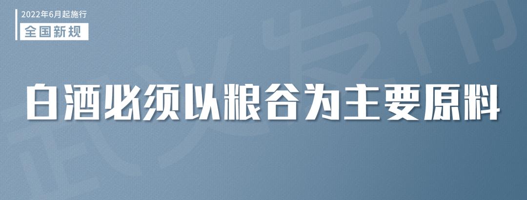 《白酒工业术语》和《饮料酒术语和分类》两项国家标准6月1日起实施,明确白酒必须以粮谷为主要原料,不得使用食品添加剂。所有添加食品添加剂的调香白酒将归属为配制酒。