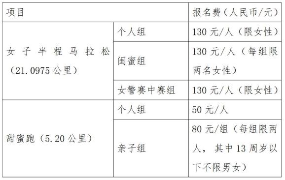 女子个人半程组4,000人、闺蜜组500人、女警赛中赛组500人