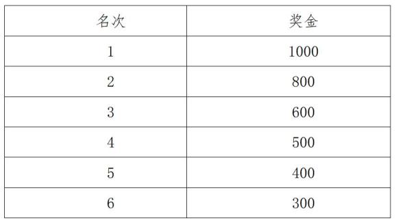2.女子半程马拉松闺蜜组名次奖:对闺蜜组两人总成绩(两人净计时成绩相加)进行排名,第1-6名(组)选手分别获得如下人民币奖金(需征收20%的个人所得税,单位:元)。