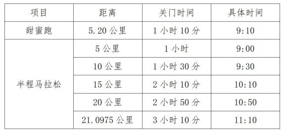 关门时间按自然时间计算,具体见下表(按上午8:00鸣枪起跑):