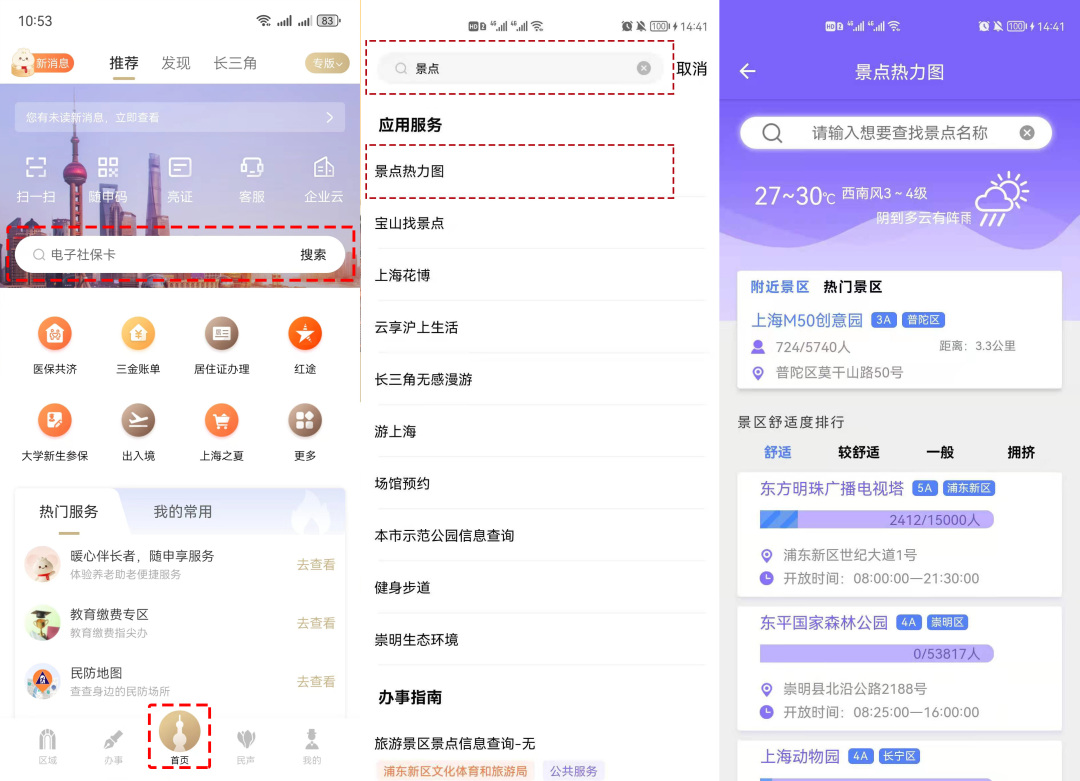 景点预约完成,出行前再同步使用“随申办市民云”APP的“景点热力图”服务,还可查询到景点实时客流量情况,有效避开人流高峰,助你提前了解地面交通状况,合理规划旅游线路和时间!