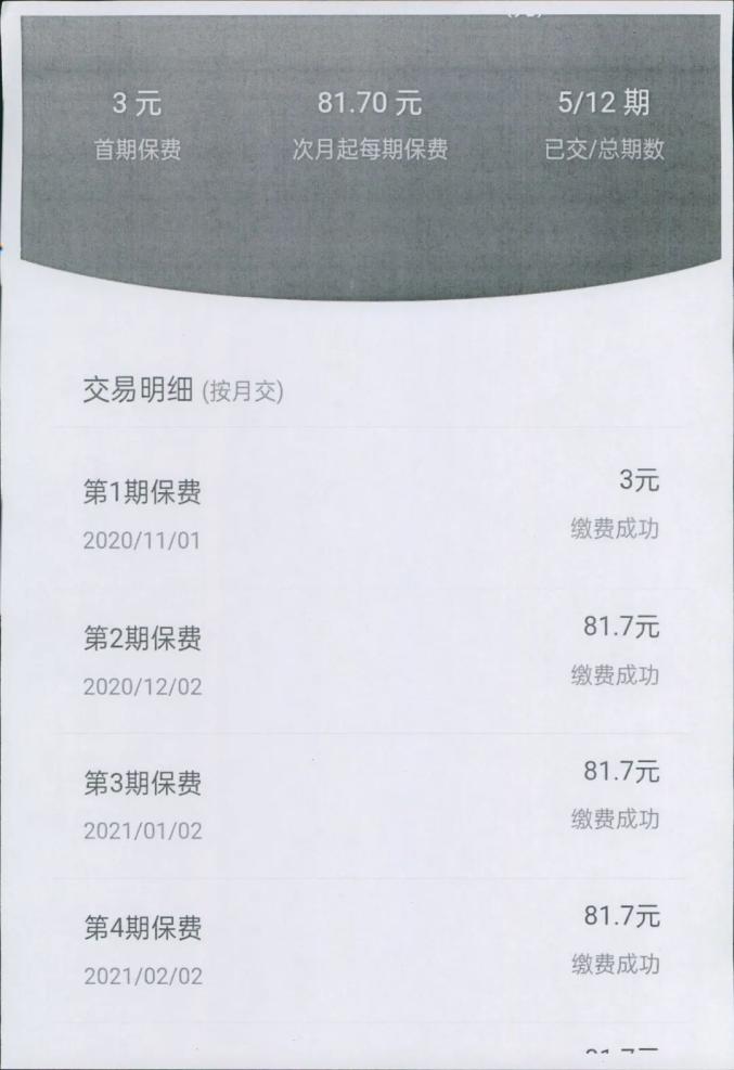 蔡女士分期交付了保费,共交付5期一共329.8元。
