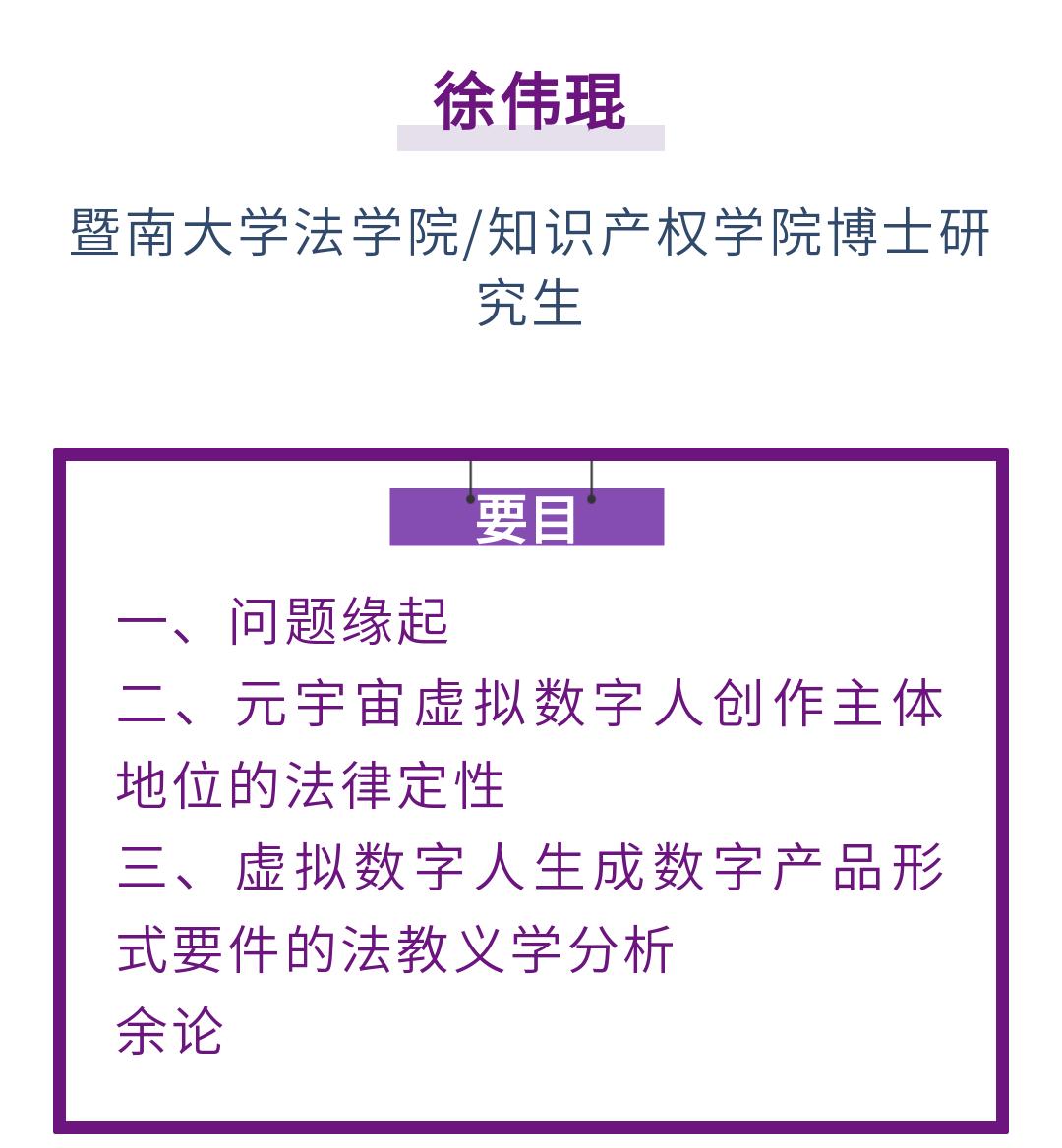 原标题:《徐伟琨|元宇宙虚拟数字人生成数字产品的可版权性》