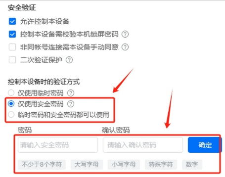 2、接着使用安全密码或者临时密码和安全密码都可以使用,点击修改后,输入两次安全密码即可。