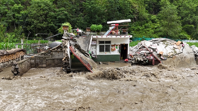 四川丹巴县东谷镇纳交村泥石流灾害现场