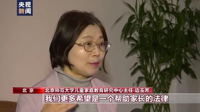 北京师范大学儿童家庭教育研究中心主任 边玉芳:第一次关于家庭教育立法,我们更多希望是一个帮助家长的法律,能够帮助我们的家长成为更好的教育者,来赋能的这样一个法律,而不是说我们一来就是说给我们的家长,你做得不好,就是要怎么怎么怎么的。当然了,家长该承担的责任也还得承担,就是说我们帮助你承担起家庭教育第一责任人的一个角色,完成你相应要完成的任务。