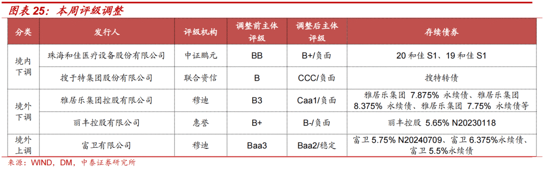 本周共4家信用债发行人主体评级发生下调,1家信用债发行人主体评级上调。