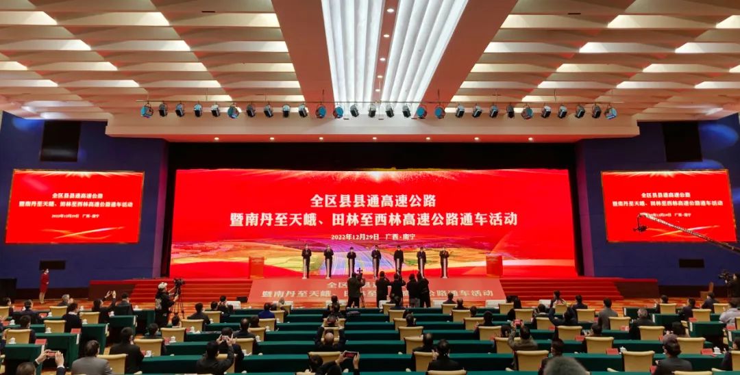 12月29日,全区县县通高速公路暨南丹至天峨、田林至西林高速公路通车活动在南宁举行,宣布南丹至天峨、田林至西林高速公路正式通车运营,标志着天峨县、西林县结束了不通高速公路的历史,全区111个县(市、区)全部通达高速公路,广西全面实现县县通高速,“县县通高速”攻坚战取得全面胜利。至此,全区高速公路运营总里程突破8000公里,广西高速公路建设迎来了里程碑式的高光时刻。