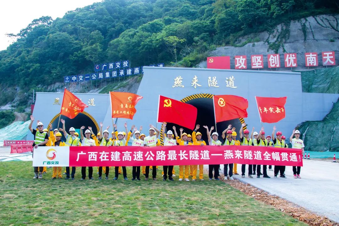 广西在建高速公路最长隧道(燕来隧道)全幅贯通。