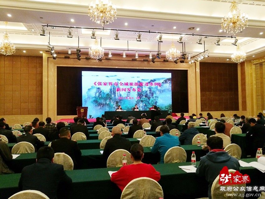 《张家界市全域旅游促进条例》(下称《条例》)经湖南省第十三届人大常委会第三次会议批准,将于5月1日起施行。 4月16日上午,张家界市举行新闻发布会,介绍《条例》相关情况。市人大常委会党组书记、常务副主任余怀民,市人大常委会副主任吴名凤,副市长欧阳斌参加新闻发布会。