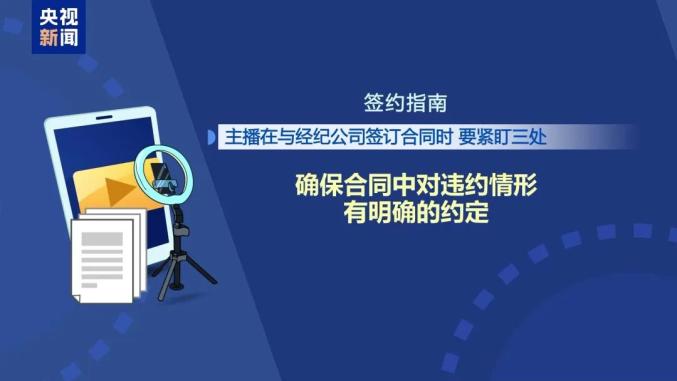 郭栋佳:比如迟播几分钟扣多少钱,直播要符合平台的哪些规定,直播时出现哪些不规范用语、行为会构成违约,这些主要的违约情形,应当明确告知主播。特别要关注“等等”“类似”这种模糊的文字表述,它可能暗藏套路陷阱,大家一定要牢记,重要内容一定要用文字的形式在合同中明确。